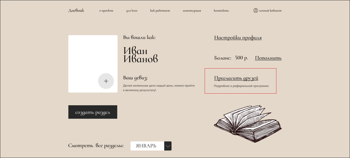 Зайдите на страницу вашего личого кабинета и нажмите «Пригласить друзей»